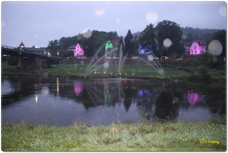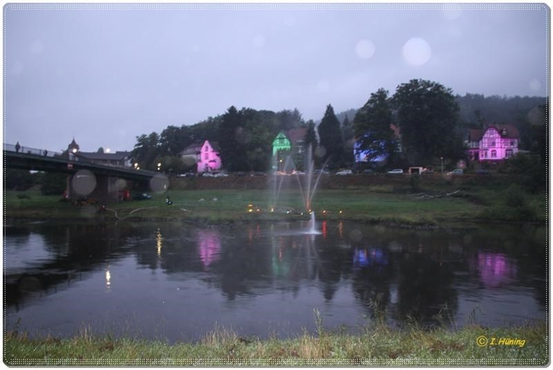 Die Veranstaltung beginnt am Abend mit einer stimmungsvollen Beleuchtung der Häuser am gegenüberliegenden Weserufer. Es gibt auch Wasserspiele, die bei Einbruch der Dunkelheit mit bengalischer Beleuchtung stattfinden. Musik und Tanz runden das Programm ab